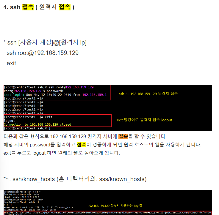 SSH๋ก ์ ์์ ์๋์ ๊ฐ์ ๋ช ๋ น์ด๋ฅผ ์ณ์ ์ ์ํ๋๊น,