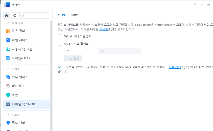 ๋ฐฉ๋ฒ 1. ์ ์ดํ-ํฐ๋ฏธ๋-SSH ์๋น์ค ํ์ฑํ๋ฅผ ๊บผ๋๋๊ฑฐ