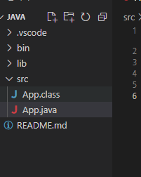 ๐์ด๋ Vscode ํ์๊ธฐ๋ ํ์ผ ํ์๊ธฐ์์ src ํด๋๋ฅผ ๋ณด๋ฉด ์ปดํ์ผ์ด ๋ App.class ํ์ผ์ด ์์ฑ๋จ์ ๋ณผ ์ ์์