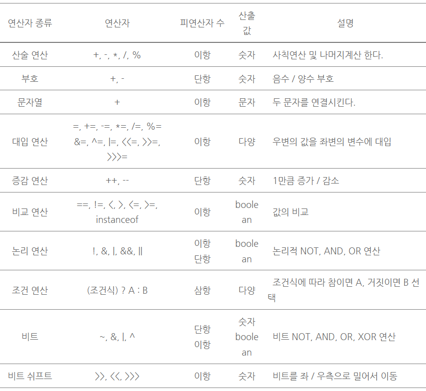๐ต ์ฐ์ฐ์์ ์ข ๋ฅ ํ