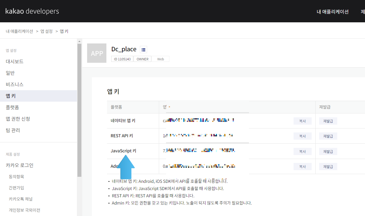 3. ์ฑํค ์์ JavaScript ํค๋ฅผ ๋ณต์ฌํ์ฌ ๋ฃ์