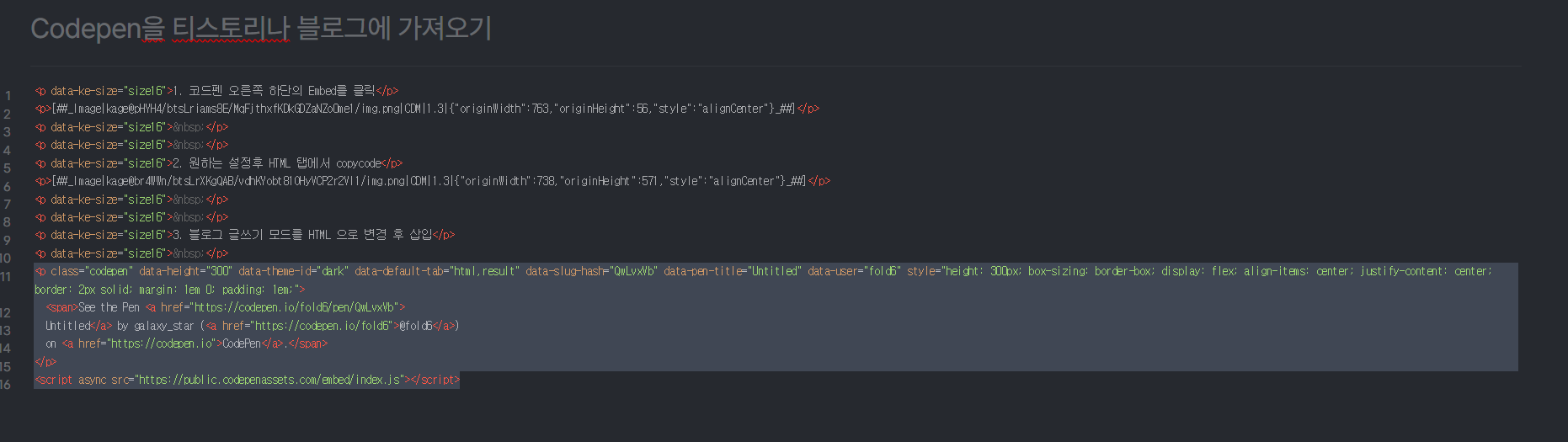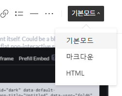 3. 글쓰기 바의 가장 오른쪽, 블로그 글쓰기 모드를 HTML 으로 변경 후 삽입