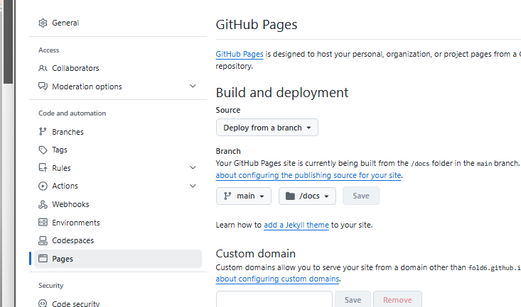 4. ๊นํ์ ํ์ด์ง ์ ํ main ๊ณผ docs ๋ก ๋ณ๊ฒฝ <๊ธฐ์กด root์ ํ๋ฉด ๋ณต์กํด์ง