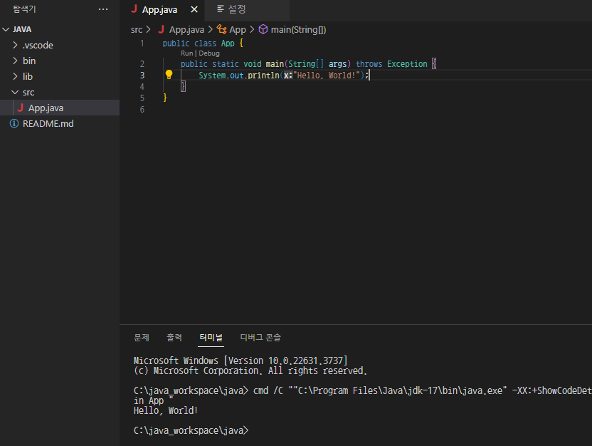 ✅ ' for ' 문특정 조건이나 횟수에 따라 코드를 반복 실행할때 사용 (초기화,조건검사,증감식 으로 구성됨)초기화: 반복문이 시작하기 전에 한 번만 실행되는 부분입니다. 변수 초기화 등에 사용조건 검사: 각 반복마다 조건을 검사하여 참이면 반복을 계속하고, 거짓(false)이면 반복을 종료증감식: 각 반복이 끝난 후 실행되는 부분으로, 주로 반복 변수를 증가 또는 감소시키는 역할을함for (초기화; 조건 검사; 증감식) { // 조건 검사가 참(true)인 동안 반복 실행될 코드 } for (int i = 1; i